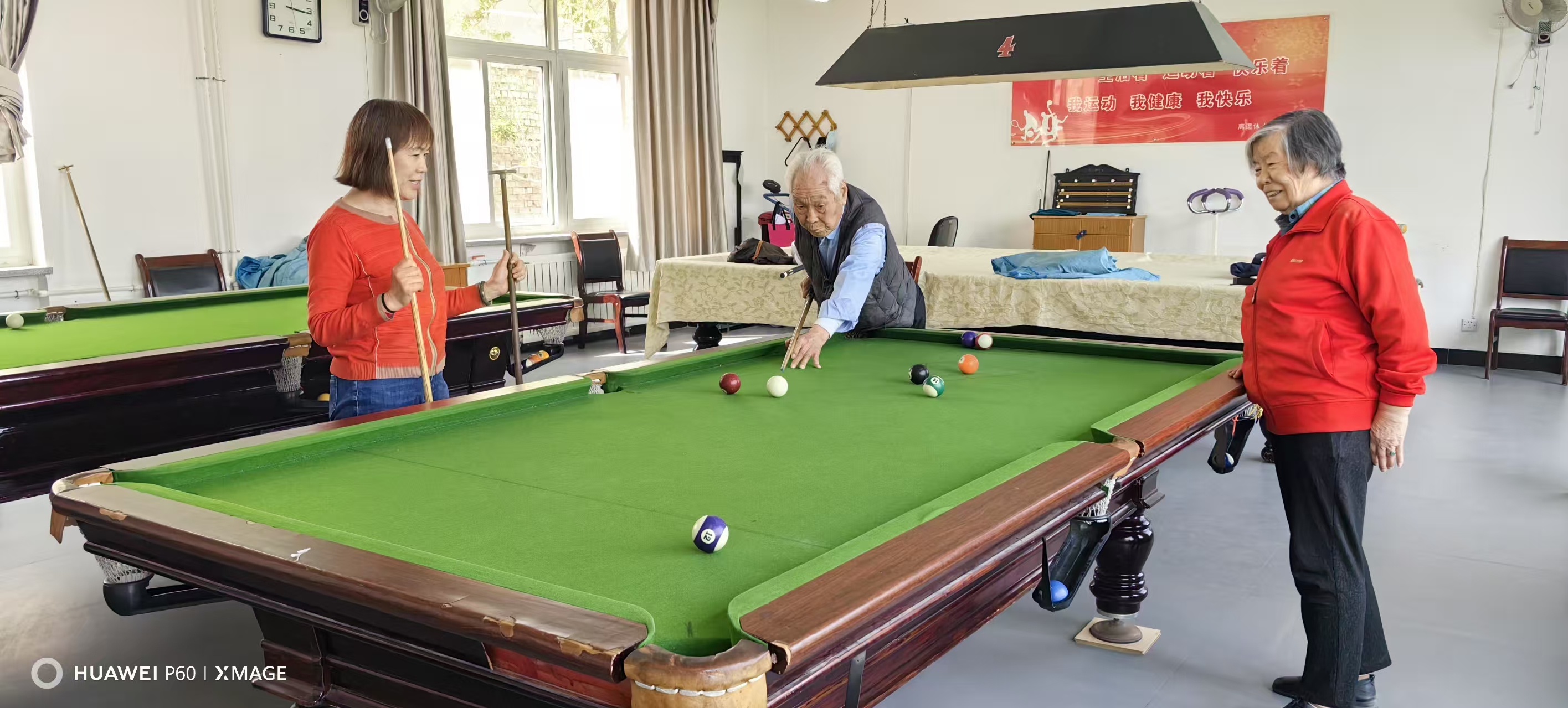 比赛现场,老同志们手持球杆专注击球,时而俯身瞄准、时而精准走位,一招一式尽显专业风范。参赛选手年龄最长者达95岁,但赛场上他们精神矍铄、步履稳健,每一次击球都引起观众阵阵喝彩。