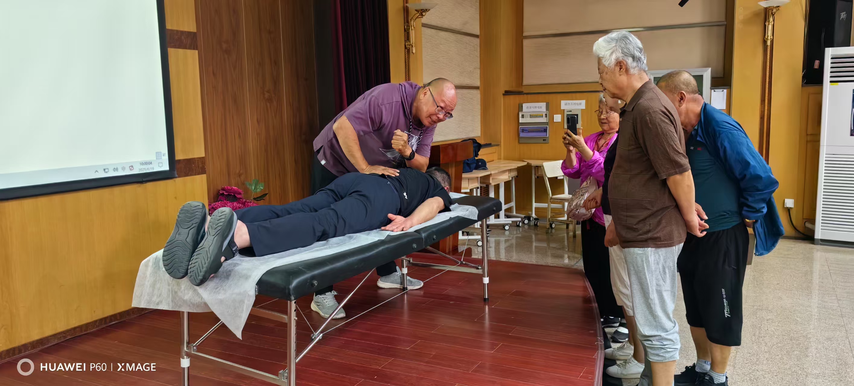 他围绕“原始点疗法调理慢性病”主题,详细讲解了颈腰椎病的常见症状及康复疗法等方面的知识,并根据老同志平时生活习惯、运动方式等提供养生小贴士,老同志们专心聆听、认真笔记,还不时就自身关心的健康问题进行提问,李建老师耐心细致地逐一解答,现场临床互动,解决实际问题,赢得了在场老同志们阵阵掌声和好评。