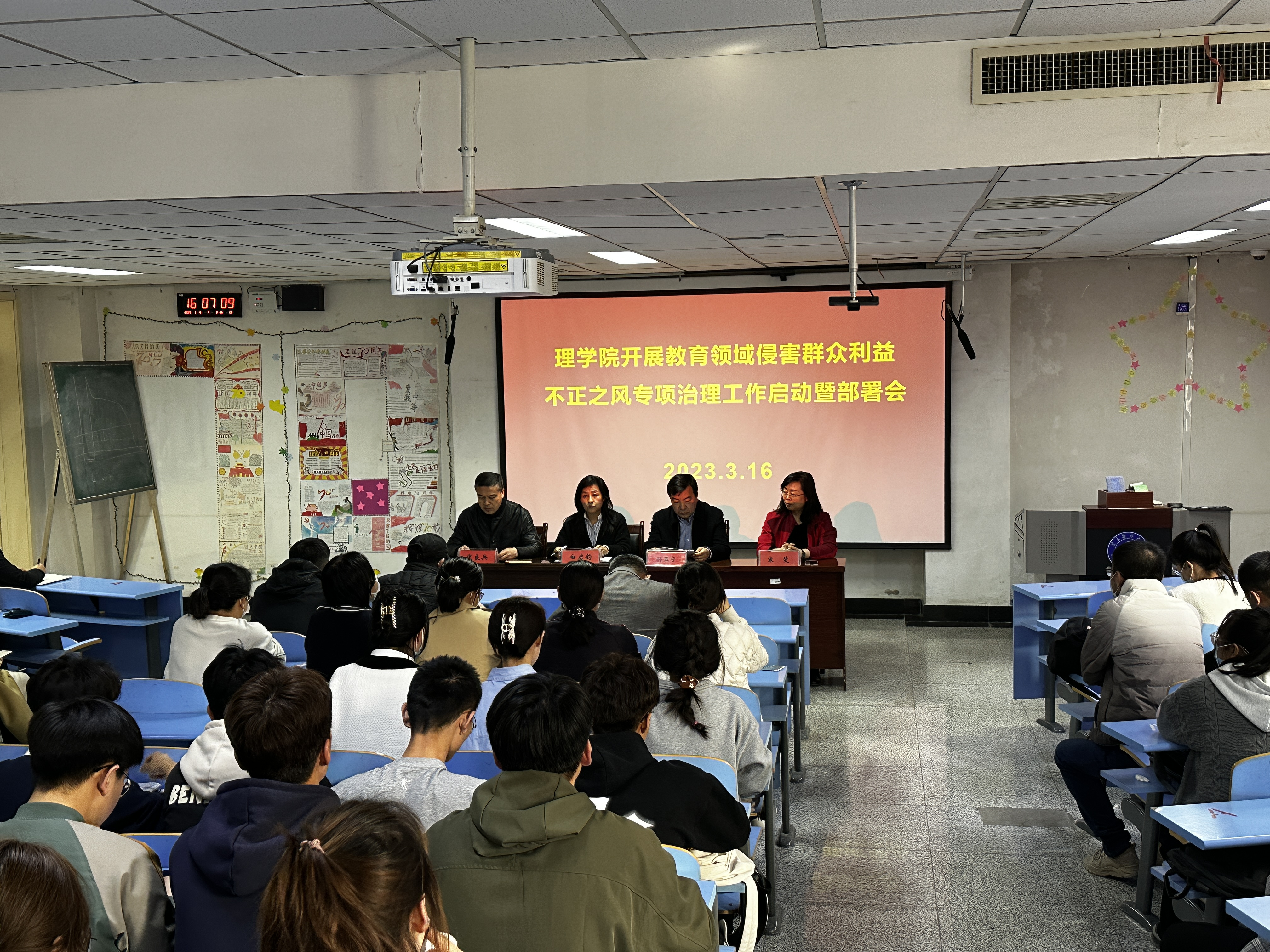 3月16日,理学院在厚生楼201教室召开了学院开展教育领域侵害群众利益不正之风专项治理工作启动暨部署会。会议由理学院党总支书记白启钧主持,全体教职工及学院2020级学生参会。