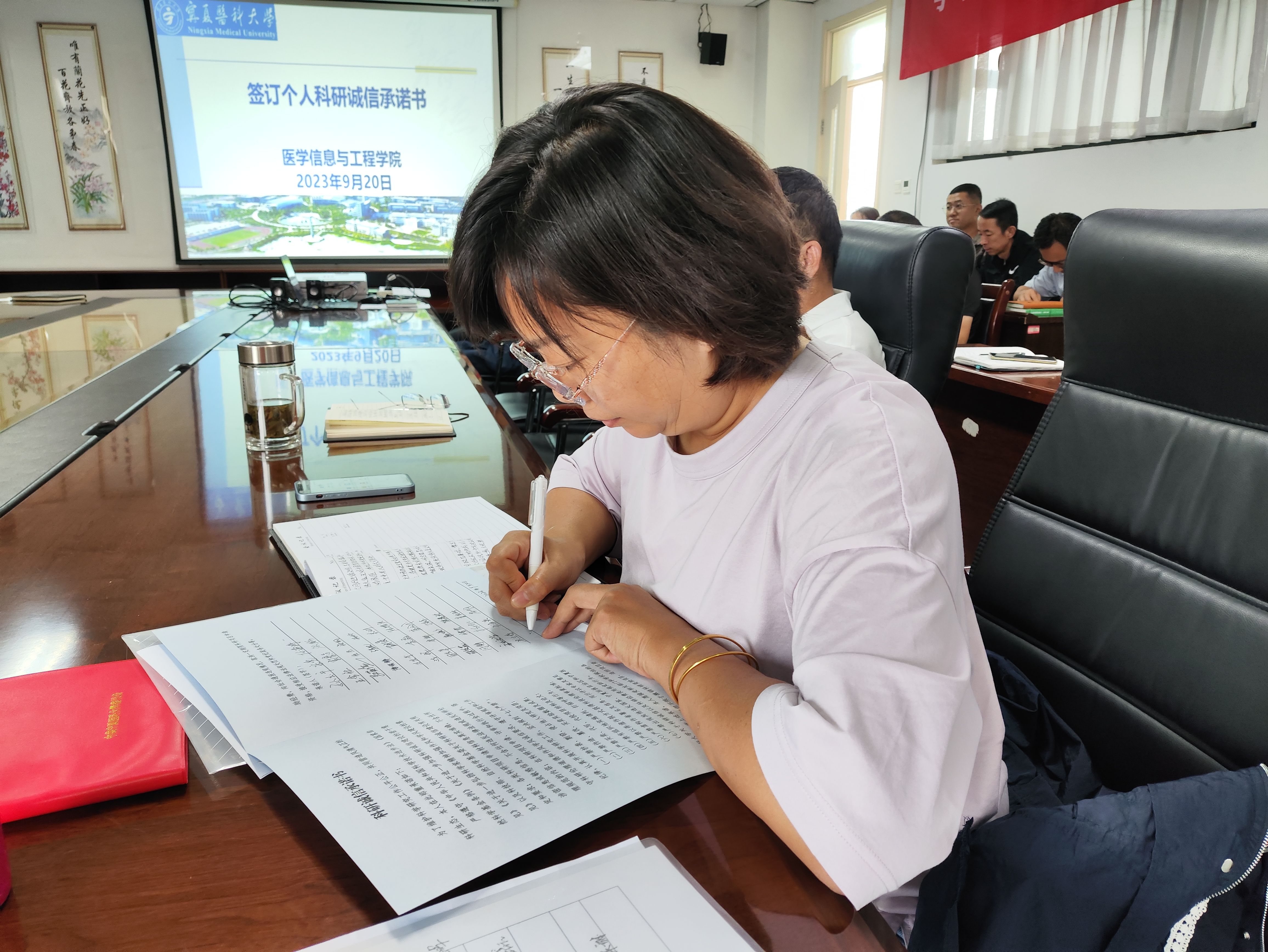 为进一步营造风清气正、求真务实的良好学术生态和科研环境。9月20日,医学信息与工程学院开展科研诚信宣传教育专题活动,学院全体教师参加,活动由任海涛副院长主持。