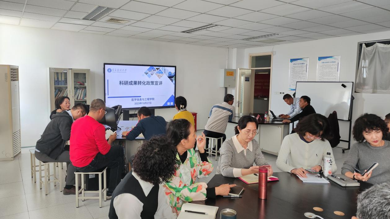10月27日,医学信息与工程学院召开科技成果转化政策宣讲交流会,邀请学校科技研究所所长杨建宏来院进行政策宣讲,会议由学院副院长任海涛主持,全体教师参加。