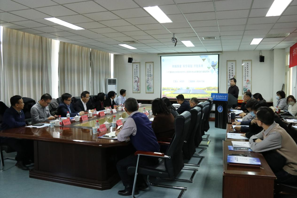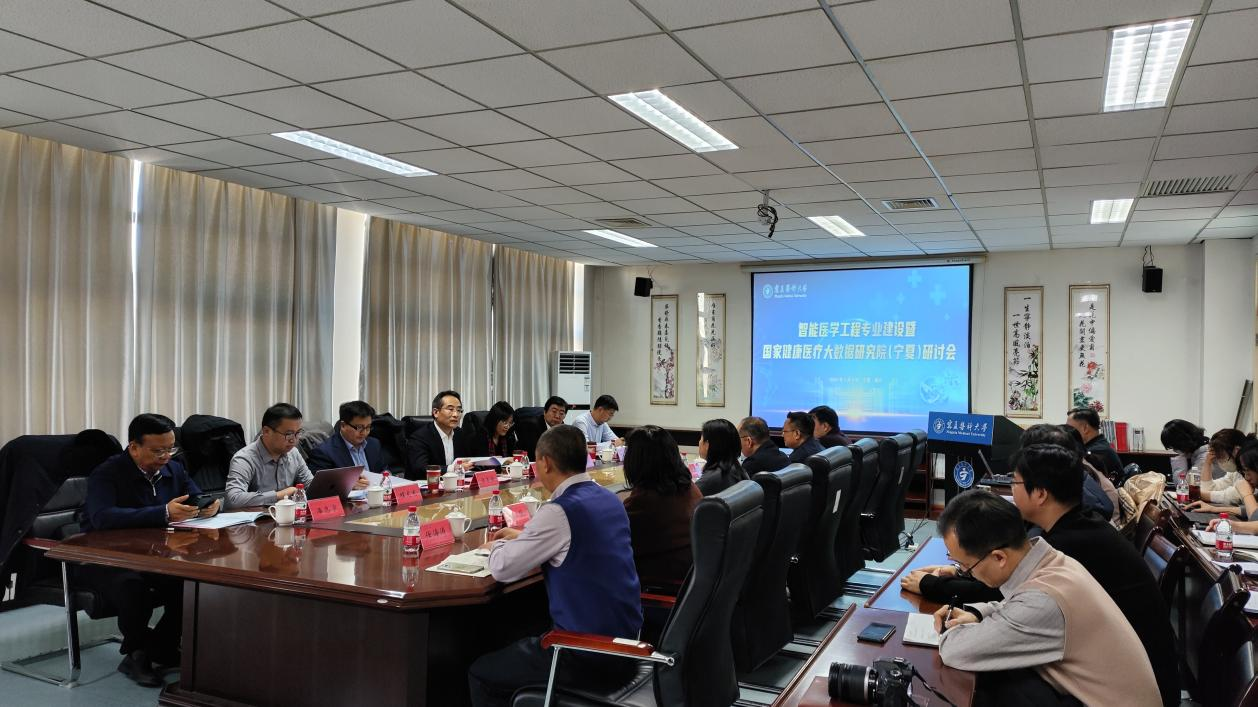 1月4日,智能医学工程专业建设暨国家健康医疗大数据研究院(宁夏)建设研讨会在医学信息与工程学院召开,国家卫生健康委、新华社新媒体中心、天津大学、自治区卫健委、中电云脑(天津)科技有限公司、国家健康医疗大数据研究院(宁夏)有关领导专家、学校相关部门负责人、学院班子和全体教职工参加,会议由学校党委常委、副校长史金龙主持。