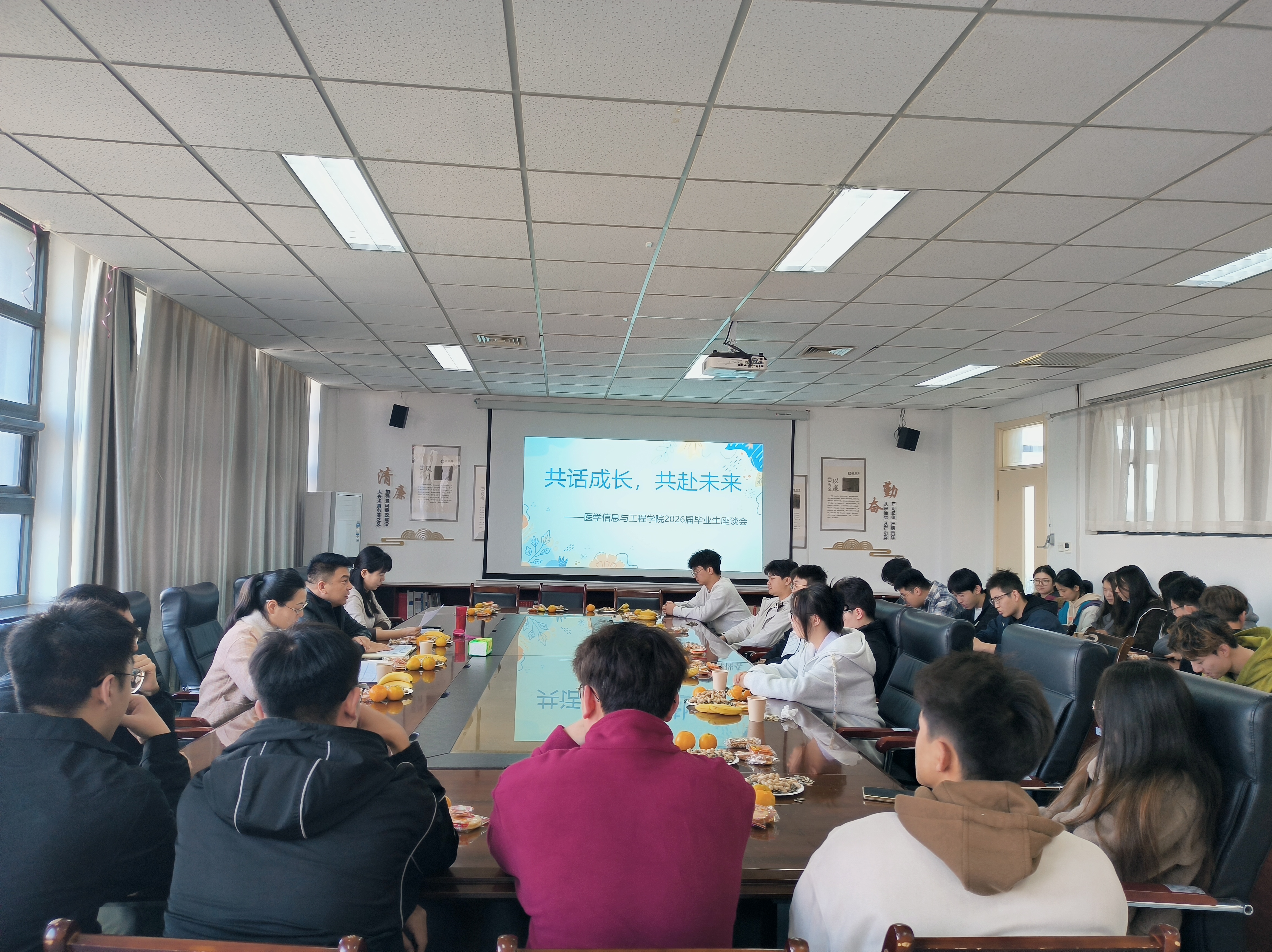 为精准掌握毕业生就业需求,破解求职困惑,助力学子锚定职业方向,10月27日下午,医学信息与工程学院以“共话成长,共赴未来”为主题,召开2026届毕业生促就业座谈会。学院分管就业工作领导、学办主任、辅导员及全体毕业生面对面交流,为就业工作“精准画像”,为学子未来“保驾护航”。