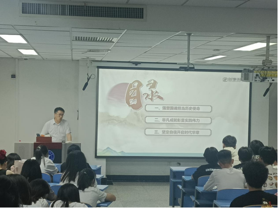 牛建国围绕“强塑国魂担当历史使命、非凡成就彰显实践伟力、坚定自信开启时代华章”三个要点深入阐述,并结合自身求学经历,鼓励同学们广泛涉猎文化知识,丰富学识涵养,提升自身文化修养。他希望医学信息与工程学院全体青年学生深入学习习近平文化思想,增强文化自信,积极投身文化创新实践,为推动社会主义文化繁荣、助力文化强国和人工智能发展建设贡献青春力量。