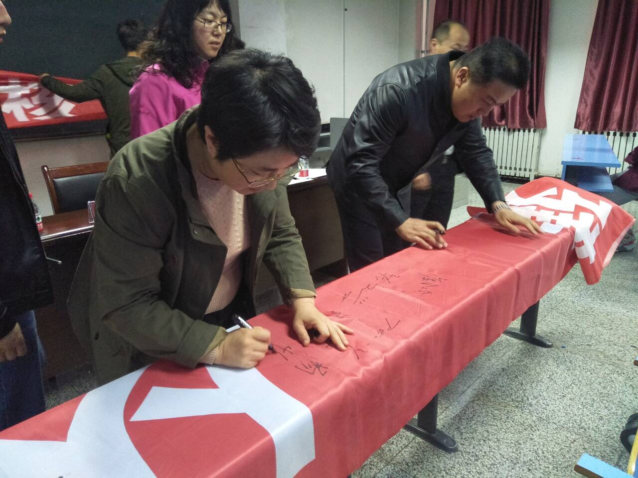在启动仪式上,杨怡院长宣读了《理学院2018年学风建设实施方案》,学院的教师党员签订师德师风承诺书,学院党总支书记刘东作总结讲话,他回顾了近年学院学风建设的状况,针对学院的学风建设存在的问题提出三点要求,他希望广大师生在今年的工作学习中撸起袖子加油干。随后,杨怡院长和代良兵副书记就学校本科教学审核评估工作对全院师生提出了工作任务和工作要求。最后,由学院领导发起倡议,全院师生在“学风建设,从我做起”条幅上承诺签名。