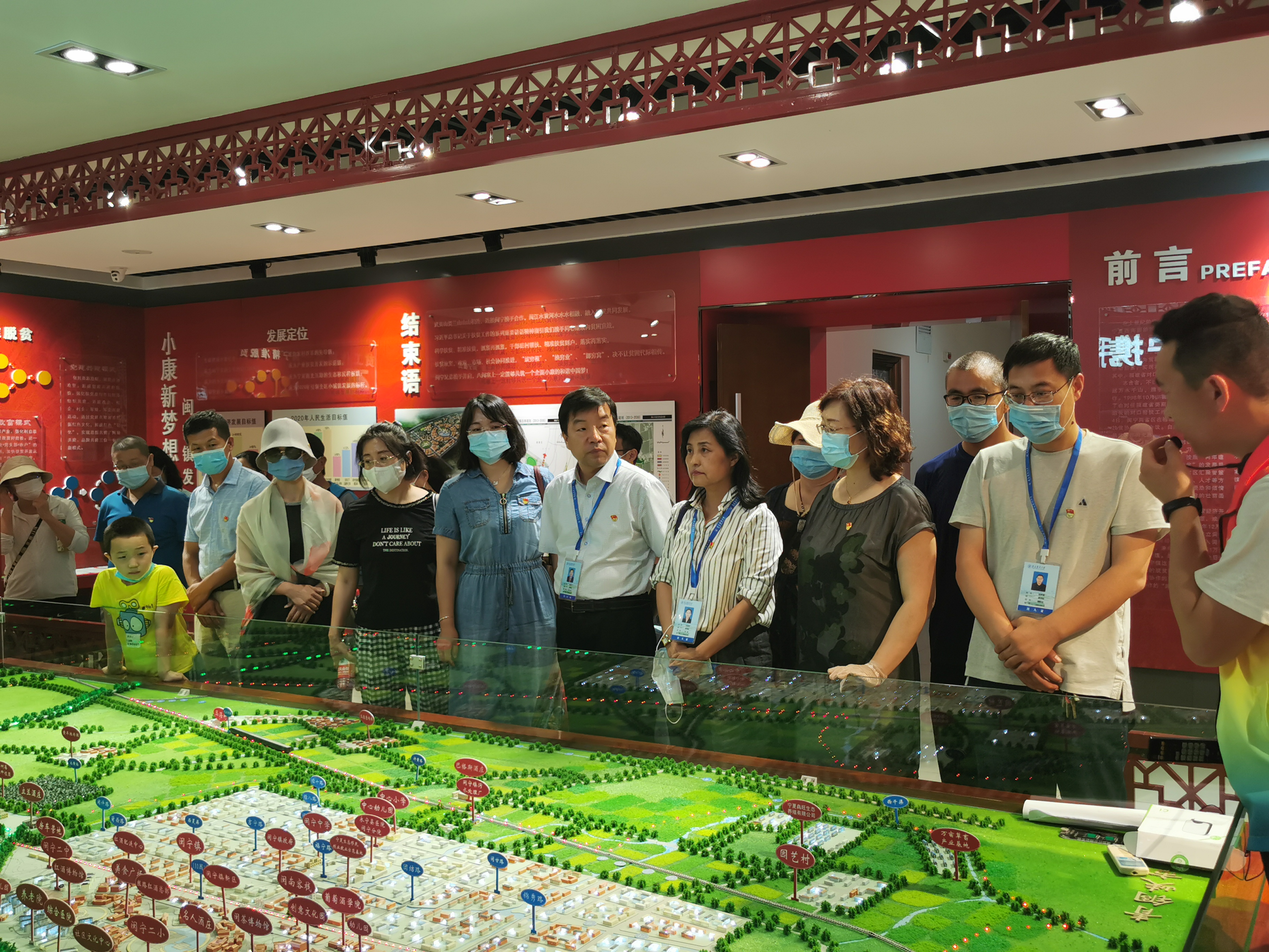 大家认真倾听、参观了闽宁扶贫合作项目的诞生和20多年发展情况,通过一张张生动的照片,回顾了生态移民前宁夏南部贫困山区群众的生存困境,历数了闽宁人把昔日“干沙滩”变为“金沙滩”的艰辛历程和现代绿色生态的美好生活景象,使大家深受鼓舞。
