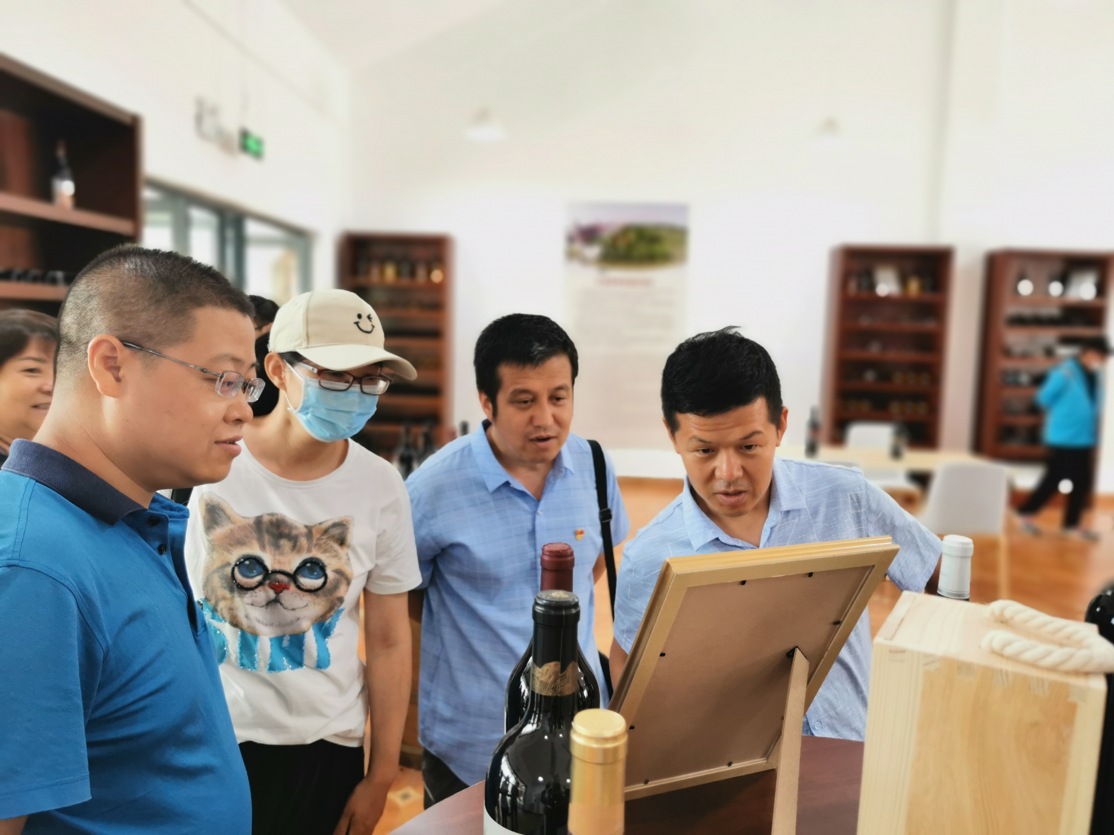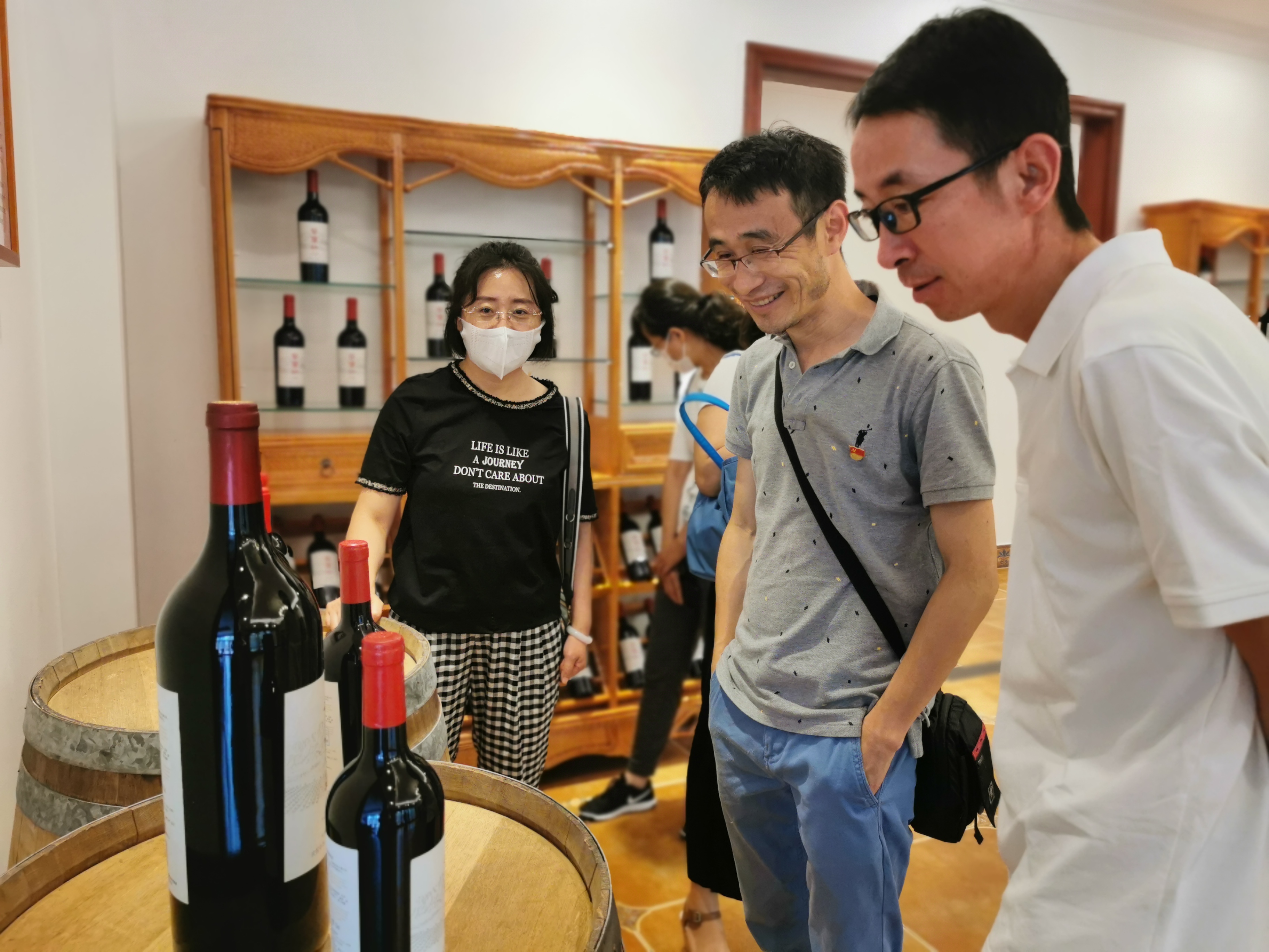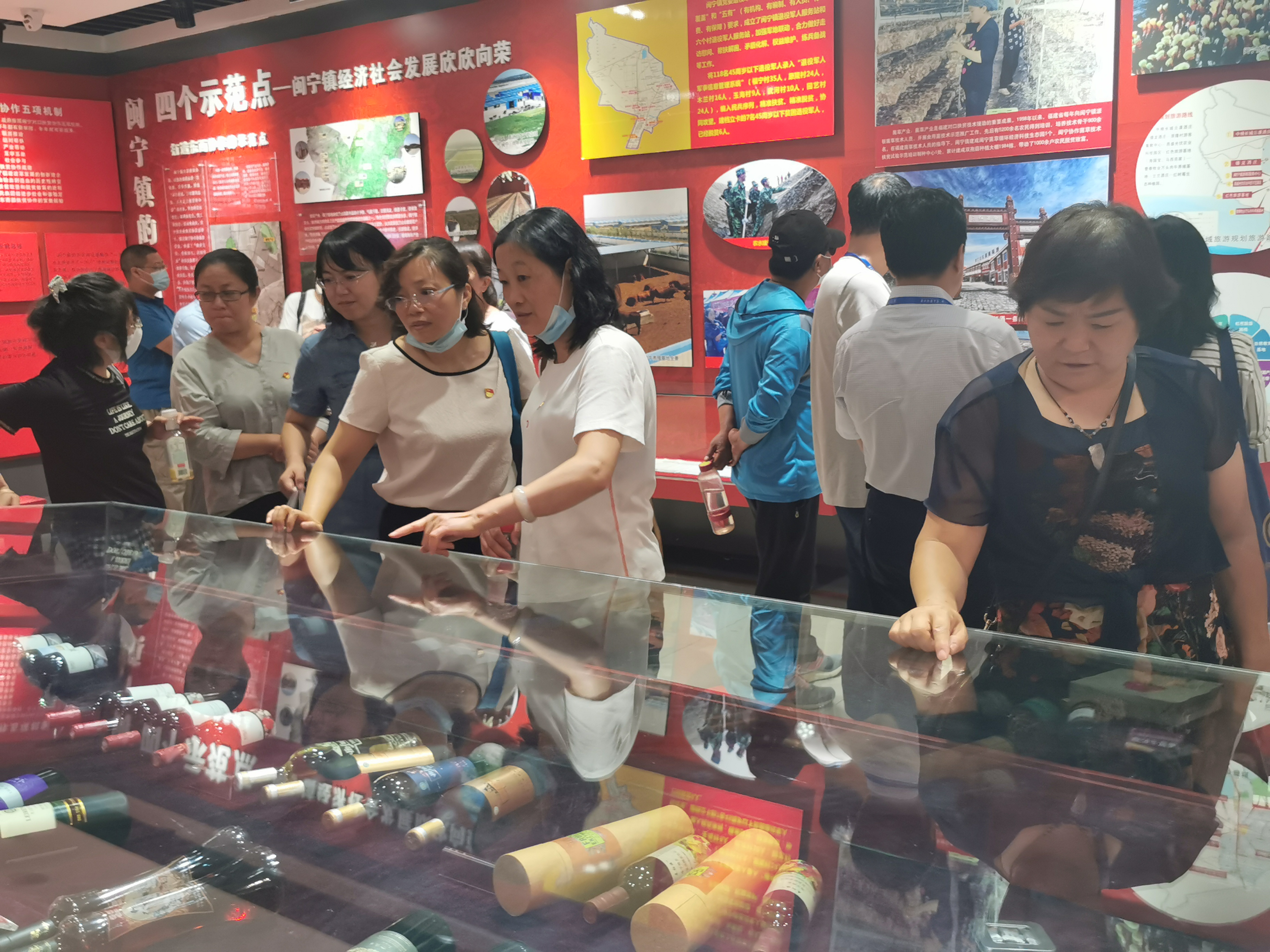 在闽宁镇红酒产业街区,工作人员给大家详细介绍闽宁镇依托地域优势,大力发展葡萄种植产业,带动周边移民就业、促进移民增收脱贫致富的成功经验,真正实现了让搬迁移民“搬得出、稳得住、能致富”的目标。