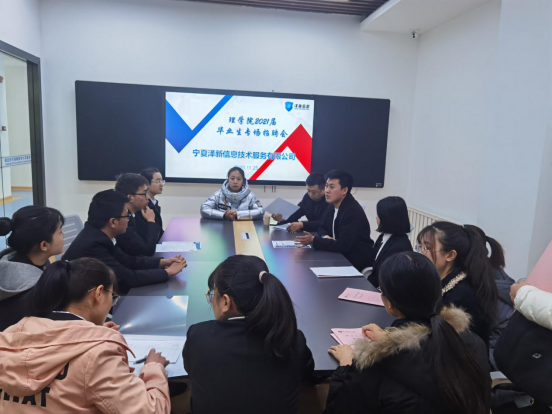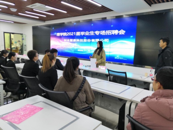 为进一步做好我院毕业生就业服务工作,解决2021届毕业生就业问题,搭建用人单位与求职者双向交流平台,理学院于11月25日下午在创新创业园举办了第二场“理学院2021届毕业生专场招聘会”。参加此次活动的有创业慧康科技股份有限公司、宁夏灵动网络技术有限公司、宁夏泽新信息技术服务有限公司、学院领导、辅导员以及理学院2017级全体学生。