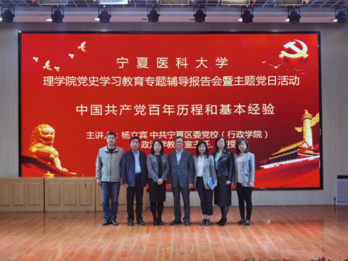 4月21日,理学院党总支开展党史学习教育专题辅导报告会暨主题党日活动,特邀中共宁夏区委党校(行政学院)政治学教研室主任杨立宾教授作专题学习辅导报告。学校党委常委、副校长、党史学习教育第四巡回指导组组长郝银菊同志出席了报告会,学院党总支书记白启钧主持了报告会。