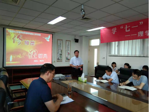 9月1日,学院在厚生楼428会议室开展了“师德大讲堂”活动,邀请学院院长孙玉宁开展了题为《修师德 塑师风》专题讲座,学院全体教职工参加。讲座伊始,连世新副院长宣读了《澳门十大信誉好的网站理学院师德师风建设实施方案》。