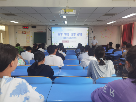 9月29日下午,学校纪委书记谢波以《立学 笃行 远志 修德——做新时代的大学生》为题,在雁湖校区厚生楼201教室为理学院2021级电子信息班全体同学讲授了一场生动的开学第一课。