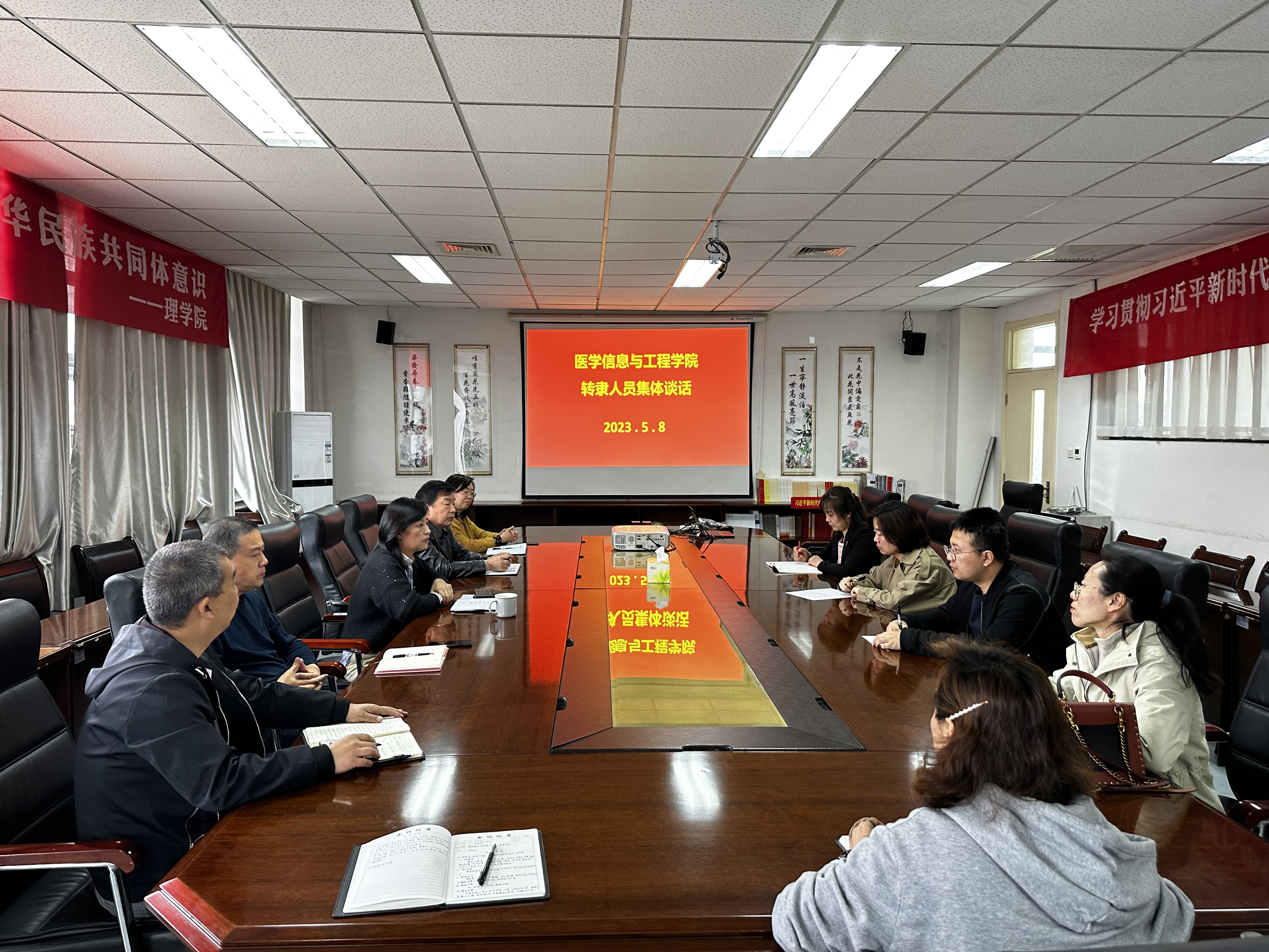为做好转隶人员工作交接,明确岗位,落实责任,根据学校前期安排部署,医学工程与信息学院于5月8日召开综合改革转隶人员集体谈话,会议由学院党委书记白启钧主持,学院领导班子及全体转隶至学院人员参会。