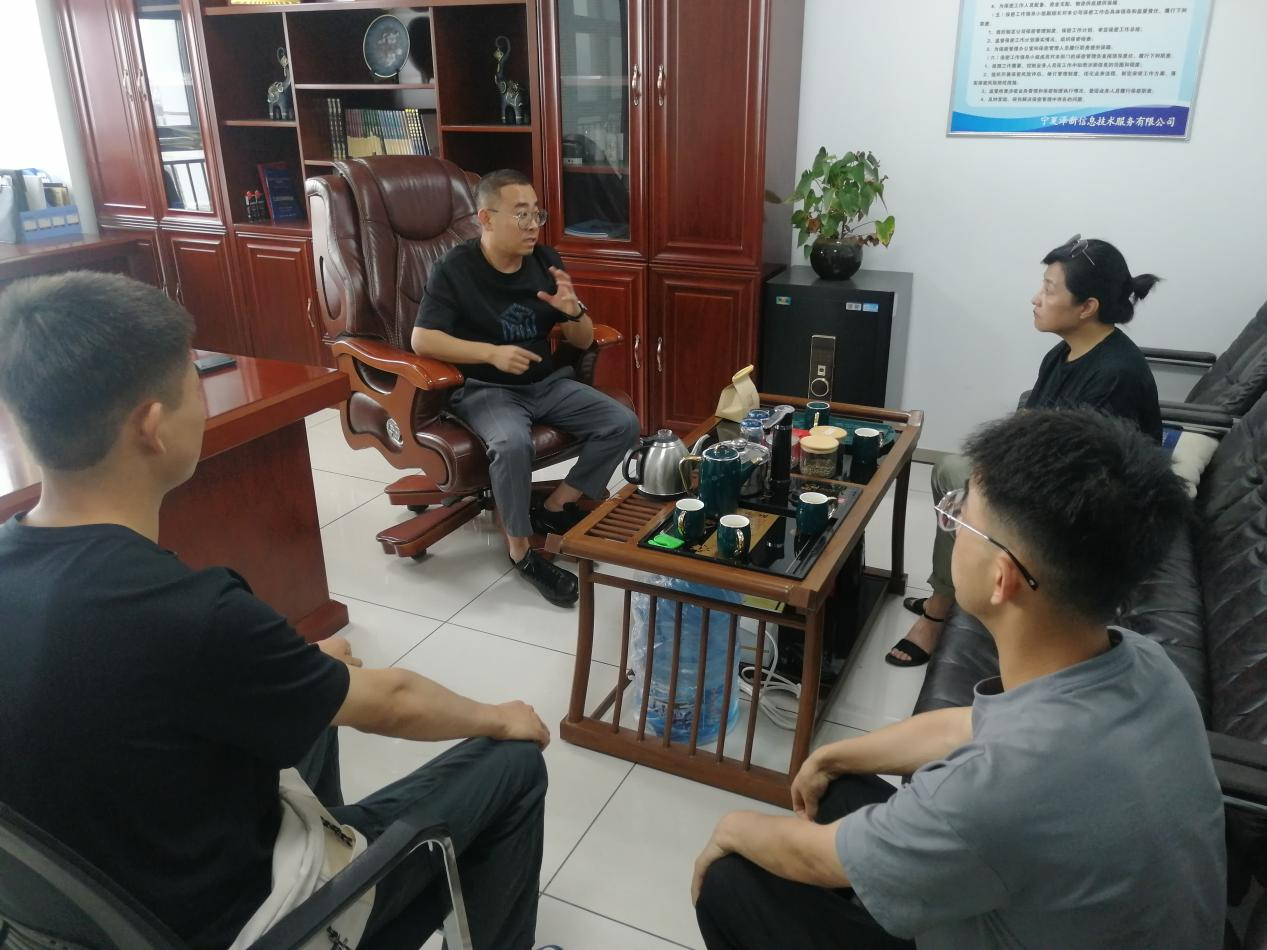 为进一步落实学院2023届毕业生就业“百日冲刺”系列活动,6月20日下午,医学信息与工程学院党委书记白启钧、副书记代良兵带领两名未就业毕业生,前往银川泽新信息有限公司进行访企拓岗,实地考察并开展座谈会。公司负责人从公司简介、发展规划、用人需求、薪资待遇等方面做了详细介绍。学院领导从学生实践、实习、就业等方面进行了深入有效的探讨和交流,往届优秀毕业生王昱杰也分享了自己在公司成长的经历和感受,欢迎师弟师妹加入。