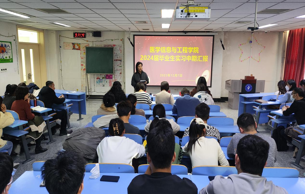 为了让学生更好的反思和总结实习过程,增强职业意识和提高综合素质,12月7日下午,医学信息与工程学院在厚生楼201教室组织开展2024届毕业生实习中期汇报,学院党委书记白启钧、副院长宋斐、各教研室老师、2020级、2021级电子信息班全体同学参加了本次活动。