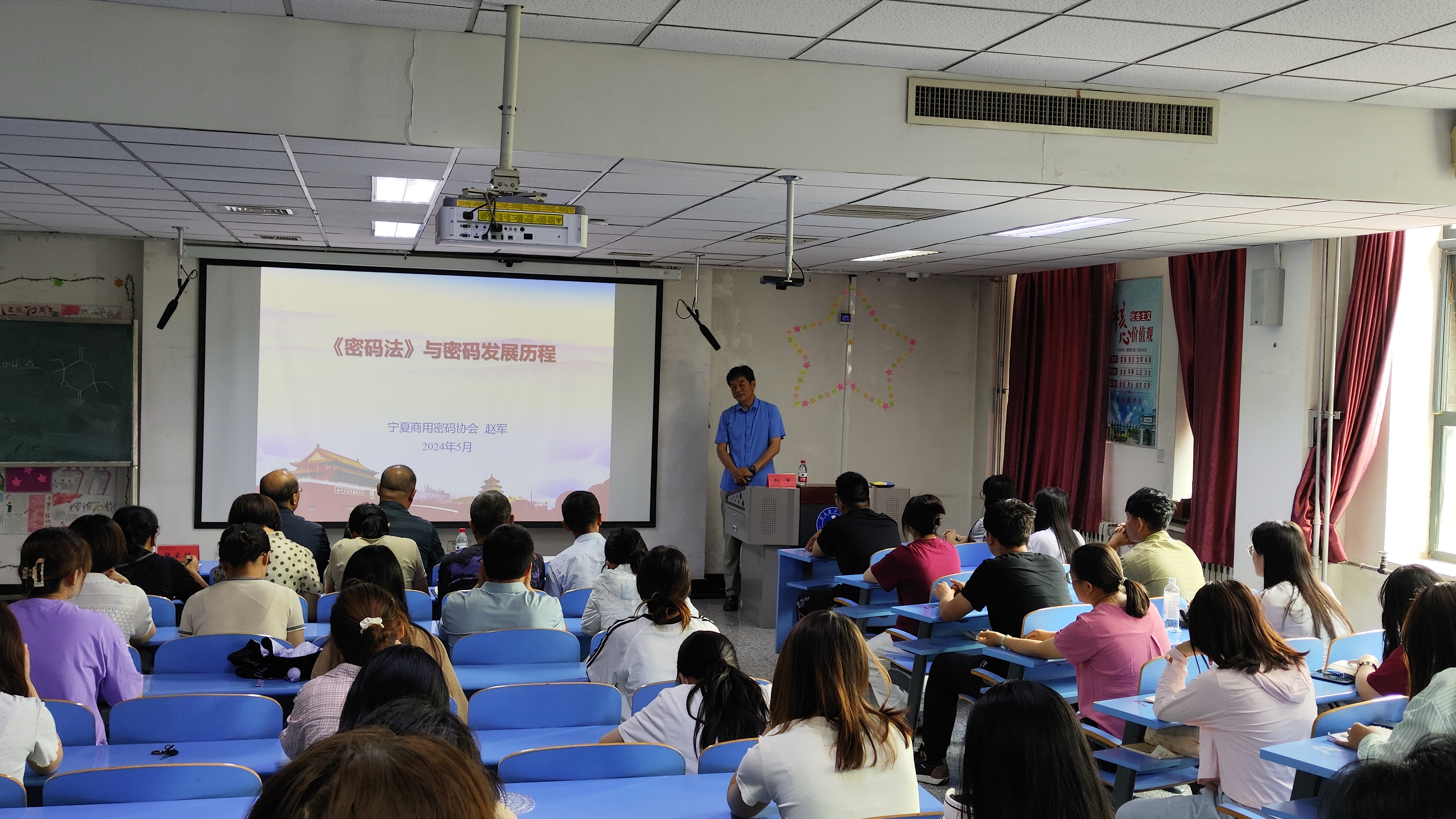 5月31日,为进一步推进科普宣传教育工作,增强密码安全意识,医学信息与工程学院联合宁夏商用协会开展“科技活动周”科普讲座,宁夏商用密码协会秘书长赵军以“《密码法》与密码发展历程”为题作科普讲座,学院师生代表现场聆听了讲座。