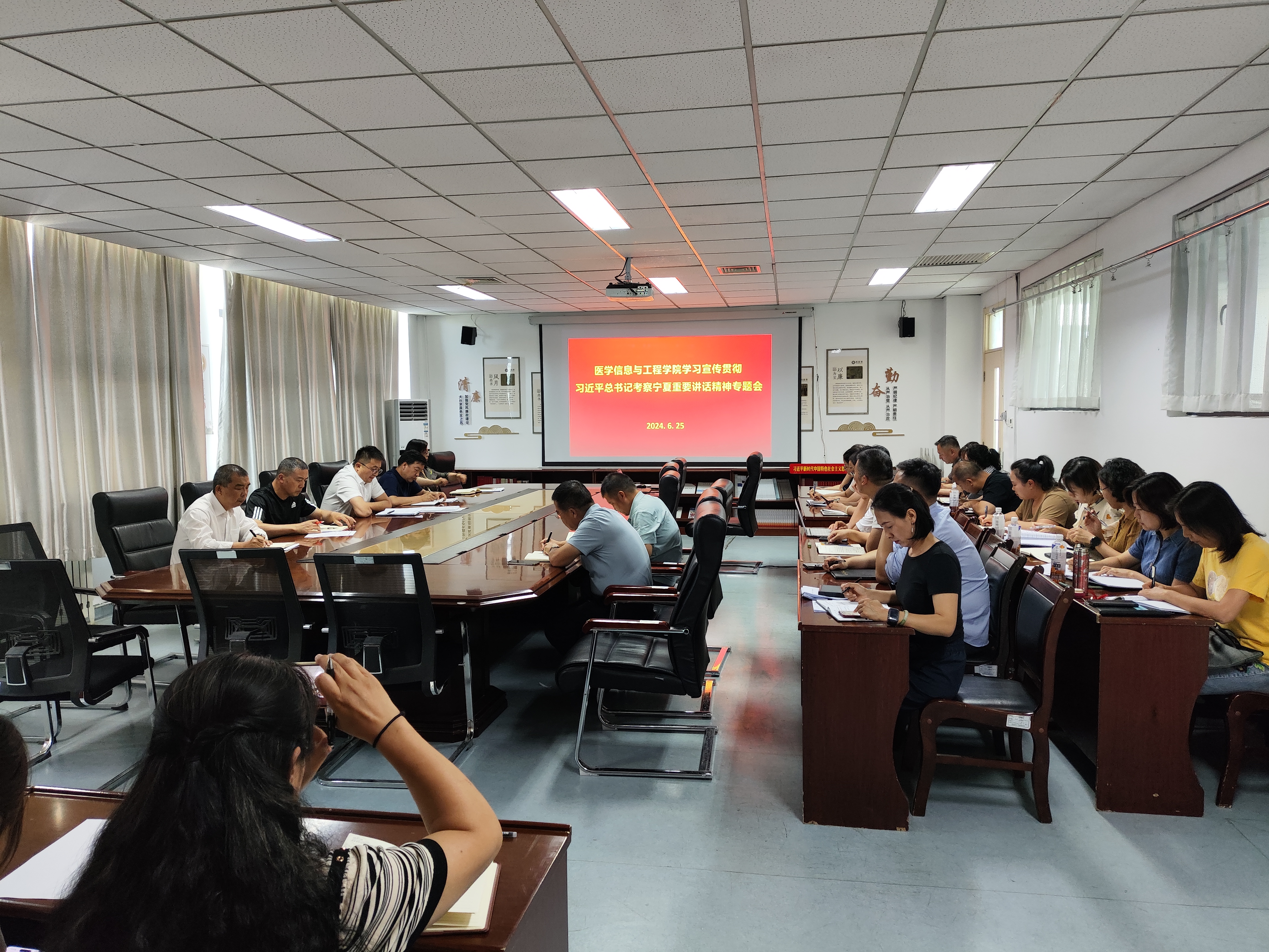 6月25日,医学信息与工程学院召开专题会议传达学习宣传贯彻习近平总书记考察宁夏重要讲话精神,传达学校党委关于学习宣传贯彻习近平总书记考察宁夏重要讲话精神具体要求,研究部署学院学习宣传贯彻具体措施。学院全体教职工参加会议,会议由党委书记张龙主持。