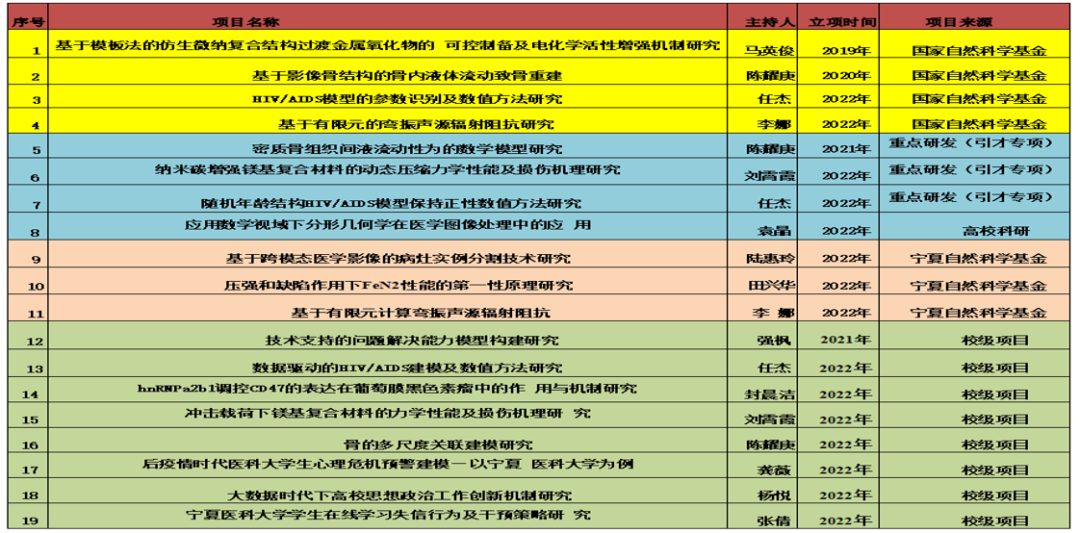 加强学科建设,提升科研能力。学院始终把人才队伍建设作为首要任务,切实做好引才、稳才、用才工作,不断加强教学科研团队建设,引进和培养高层次博士人才11人,组织科研学术活动,促进科研成果产出。2021年,获批建设“宁夏医学信息分析与仿生材料研究”校级重点实验室,为高层次人才开展科研工作搭建平台。近年来,学院承担国家及省部级研究课题近30项,总经费达400余万元;在国内外期刊上发表论文80余篇,其中SCI收录16篇,授权国家发明专利及软件著作权20余项,出版著作近10部。