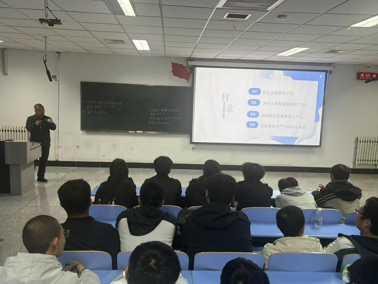 讲座中任海涛从新质生产力的内涵、特点及未来社会发展中的重要地位,因地制宜发展新质生产力、发展新质生产力的核心要素和新质生产力于绿色生产力的关系等方面讲述了新质生产力的主要内容。他希望作为新时代的青年学子,要紧跟时代步伐,不断学习新知识、新技能,为推动我国经济社会高质量发展贡献青春力量。