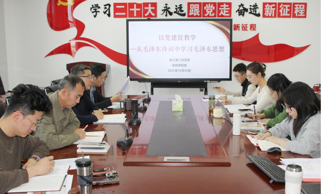 10月30日下午,马克思主义学院教工第二党支部联合“毛泽东思想和中国特色社会主义理论体系概论”课程组(教研室)开展“以党建促教学——从毛泽东诗词学习毛泽东思想”主题党日。