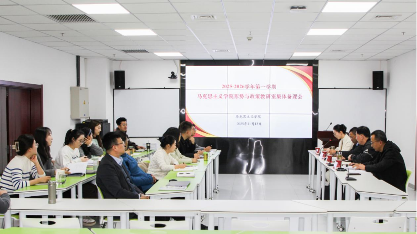 11月13日上午,马克思主义学院“形势与政策”教研室在知行楼组织召开2025-2026学年第一学期集体备课会。教研室全体专兼职教师参会,通过多元环节设置,共同探索教学创新路径。