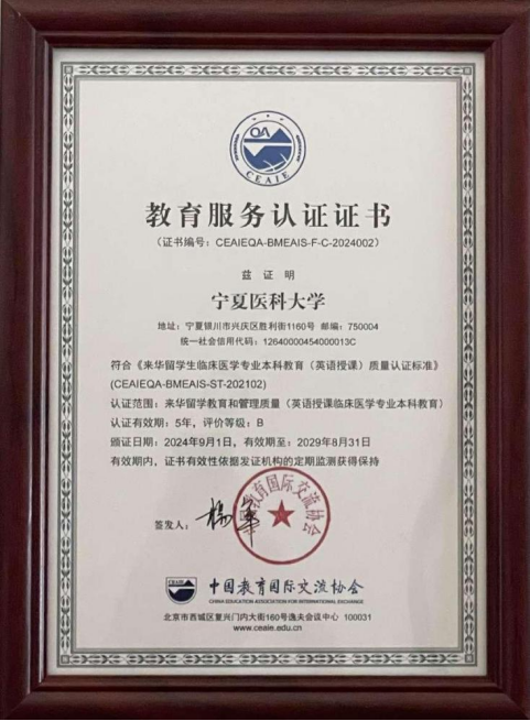 学校于2023年12月正式接受了认证专家组现场审查。此次来华留学生临床医学专业本科教育(英语授课)质量认证的顺利通过,是十大信誉国际教育工作的重要里程碑,对十大信誉做优做强国际教育,提升来华医学留学生培养质量,打造“留学宁医”品牌具有重要意义。