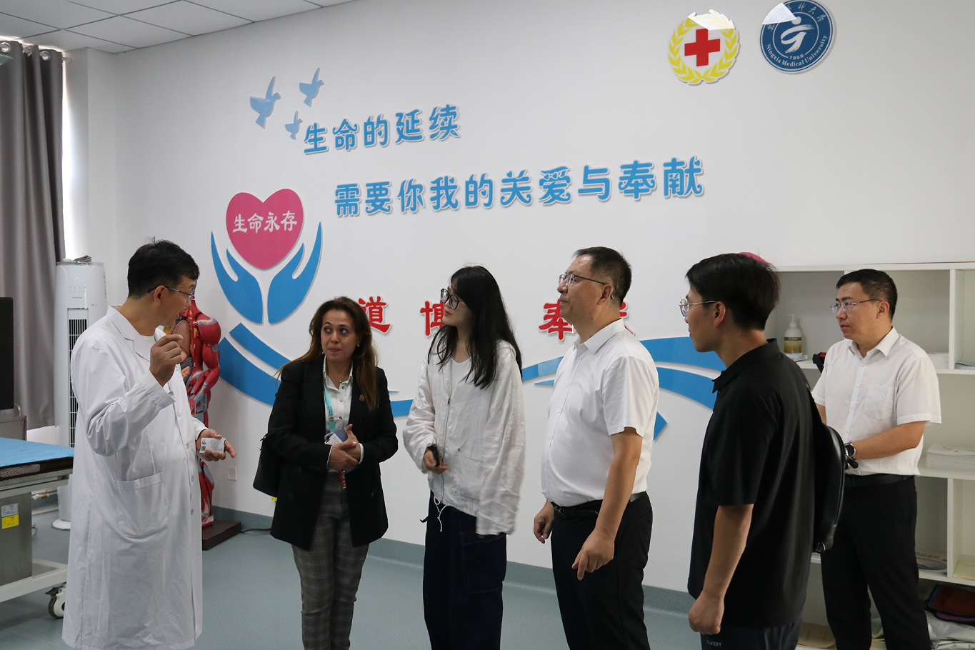 8月30日,埃及艾因夏姆斯大学医学院Shereen Fawaz教授一行专程来校交流,先后参观走访了基础医学院解剖实验室、护理学院临床技能培训中心、国际教育学院、中医学院中医药标本馆等地,并就两校开展国际交流合作进行了探讨交流。