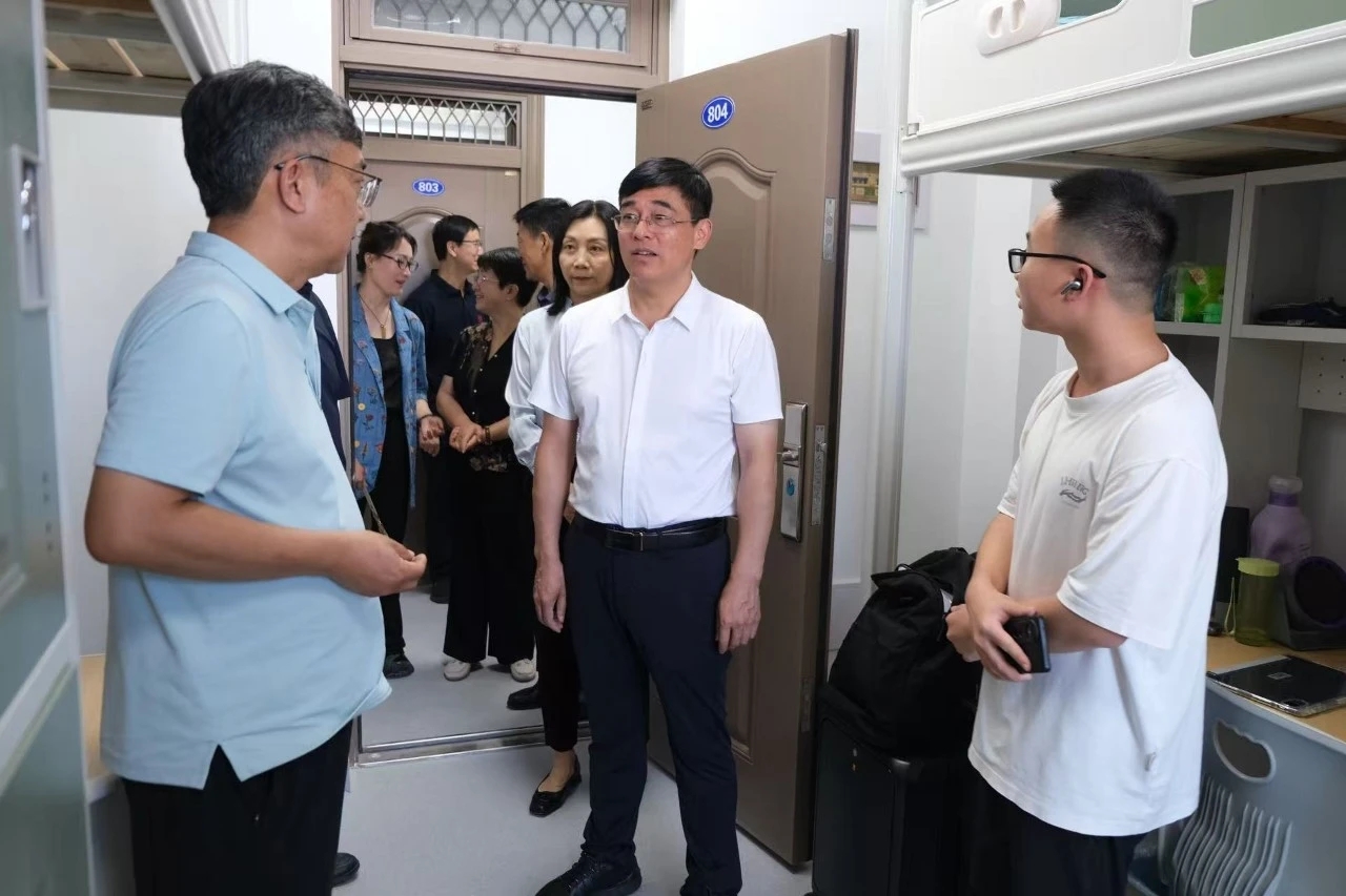 8月31日,学校2025级学生迎新报到工作在雁湖校区、双怡校区同步进行,学校党委副书记、校长姜怡邓,党委副书记韩蕃璠,党委常委、纪委书记、监察专员张立杰,副校长杨怡,党委常委、总医院党委书记刘娟,党委常委、副校长韩怀钦,相关部门(单位)负责人前往迎新报到点和生活区走访看望前来报到的新生、迎新志愿者和工作人员。