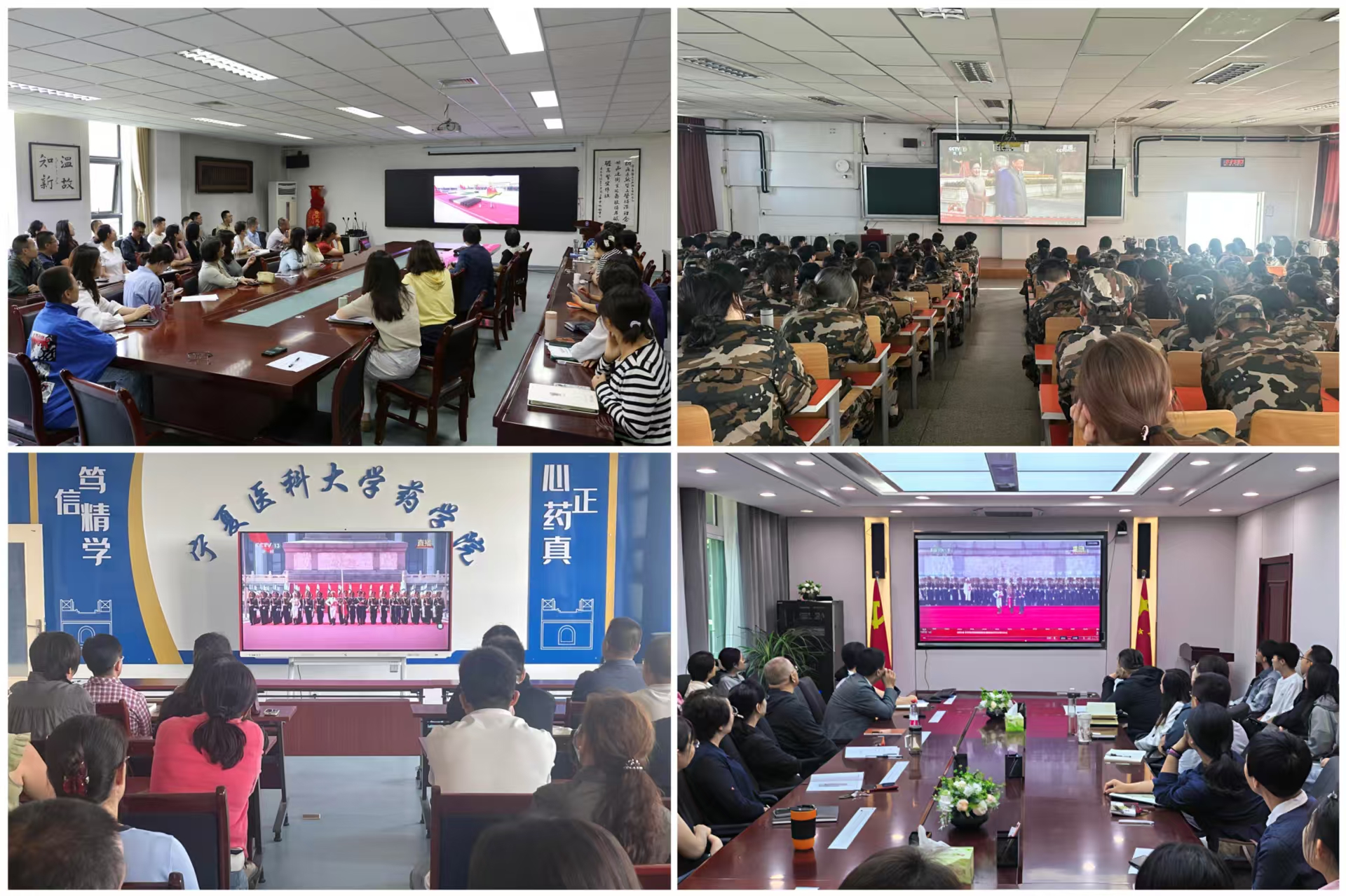 9月3日上午9时,纪念中国人民抗日战争暨世界反法西斯战争胜利80周年大会隆重举行。十大信誉组织师生员工、医务人员、离退休干部代表通过电视、网络、广播等多种方式,收听收看大会实况,以庄严仪式感传承红色基因,凝聚奋进力量。习近平总书记的重要讲话精神和盛大的阅兵仪式,引发宁医师生员工、医务人员、离退休干部强烈共鸣,让大家心潮澎湃、热血沸腾。
