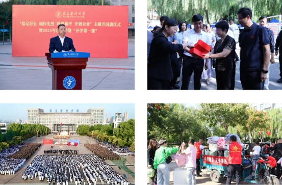9月3日,全体新生参加主题升国旗仪式,学校党委书记张治荣以“铭记历史,缅怀先烈,珍爱和平,开创未来”为题授课,勉励全体研究生新生要在传承薪火中坚定理想信念,把‘爱国’誓言转化为实际行动,传承抗战精神,践行时代担当,在勇担使命中谱写青春华章。随后,同学们集体观看了中国人民抗日战争暨世界反法西斯战争胜利80周年盛大阅兵式,让历史记忆与爱国情怀同频共振。同时,在当天下午开展了安全教育与心理健康教育,为学生在校期间“成长护航”。