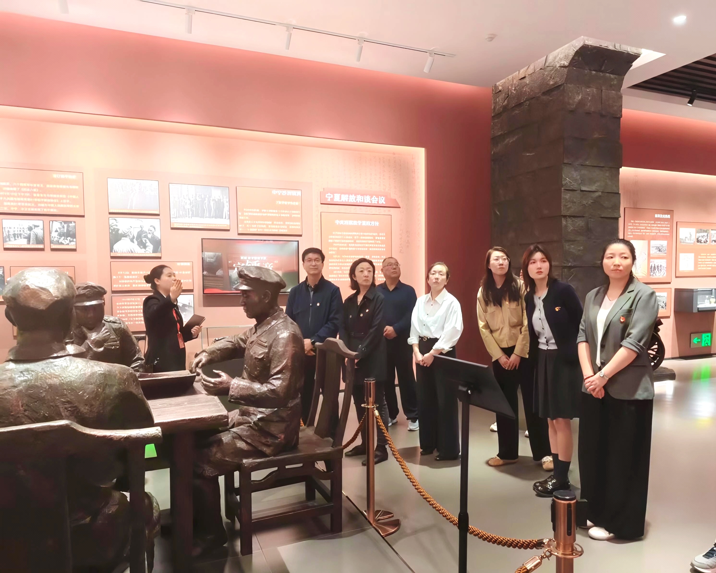 随后,全体党员干部来到吴忠市涝河桥烈士陵园,开展红色教育。在烈士纪念碑前,大家整齐列队、昂首肃立,向英勇牺牲的革命先烈鞠躬默哀,并向纪念碑敬献花篮,表达对先烈的深切缅怀与崇高敬意。在讲解员的带领下,党员们走进革命烈士纪念馆,通过珍贵的历史照片、详实的文字史料,共同追忆革命先辈浴血奋战的峥嵘岁月,深入了解革命烈士为民族独立、人民解放、国家富强所作出的伟大牺牲与卓越贡献,接受了一次深刻的爱国主义教育和党性洗礼。