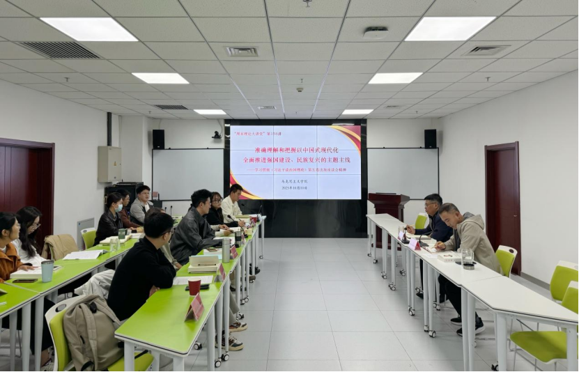 为扎实推进新时代高校思想政治理论课创优行动,提升思政课教师理论素养与教学能力,10月10日,马克思主义学院组织全体教师集中收看“周末理论大讲堂”第158讲线上直播,围绕“以中国式现代化全面推进强国建设、民族复兴”主题,结合《习近平谈治国理政》第五卷出版座谈会精神,开展专题学习与交流研讨,进一步夯实思政教育理论根基。