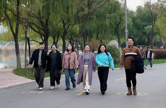 活动中,大家分别在雁湖校区正德楼和双怡校区西广场前集合,按照预定路线有序出发。途中,大家结伴同行、大步向前,欣赏着校园的秋色、交流着工作生活收获,欢声笑语间展现着宁医教职员工的良好精神风貌,以更饱满的热情投入到教育教学工作中。