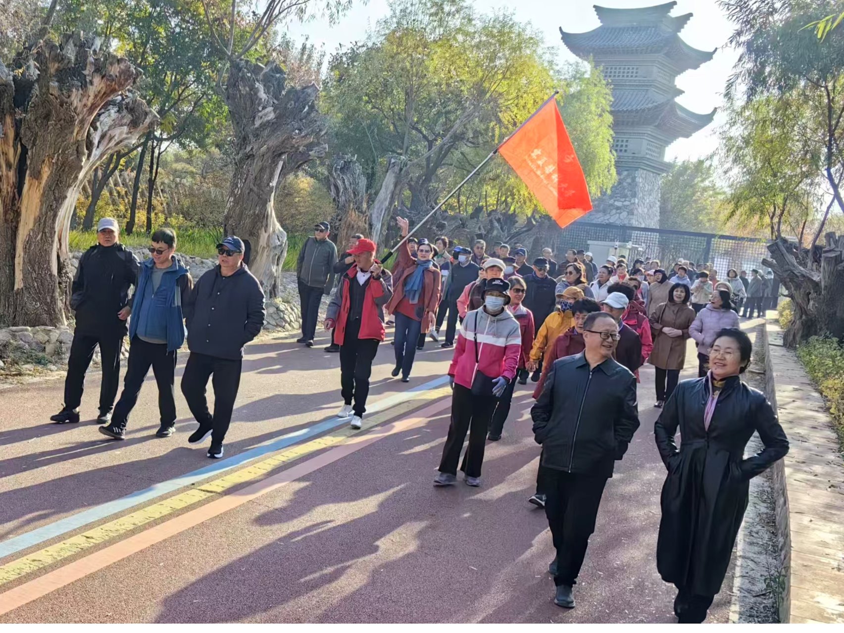 10月28日,学校组织离退休老同志开展“深秋画卷韵味浓,健步赏景暖重阳”健步行活动。140余名离退休老同志满怀喜悦齐聚贺兰山运动公园,以健步赏景的方式共赴秋日之约,喜迎重阳佳节。