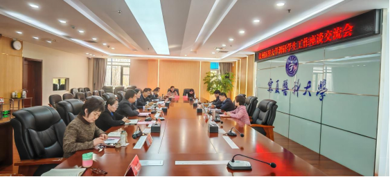 11月15日,温州医科大学党委副书记章成斌一行来校访问交流。学校党委副书记韩蕃璠,学工部、研究生工作部、第一、二、三临床医学院、大学生就业指导与服务中心等部门(单位)负责人及工作人员参加。