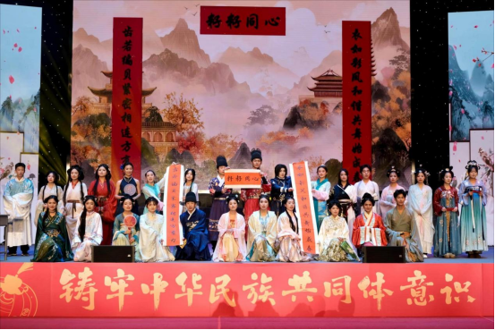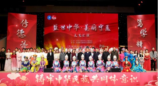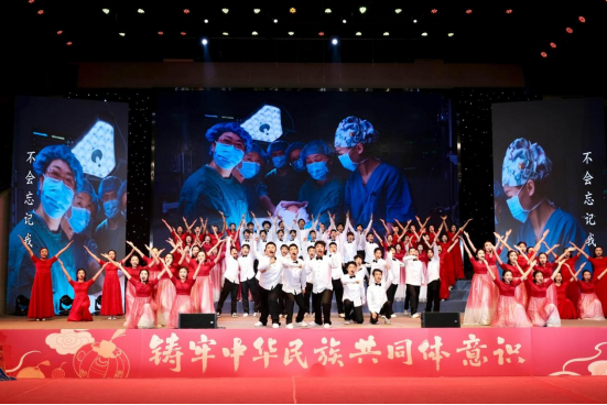 整场演出以铸牢中华民族共同体意识为主线,汇集舞蹈、戏曲、情景剧等多种艺术形式,成为宁医人锚定时代方向、践行育人使命的生动写照。作为“十四五”时期学校深耕“五育并举”的成果缩影,演出紧扣党的二十届四中全会“推进中华民族共同体建设”“加强青年思想道德建设”的部署要求,用美育架起文化桥梁、筑牢同心之基,让爱国主义情怀在青春脉搏中持续跳动,既彰显艺术感染力,又饱含思想引领力。它不仅是一场浓缩“十四五”文化育人成效的视听盛宴,更是一堂具象化诠释党的二十届四中全会精神的思政大课,生动展现了宁医人对祖国的热爱、对青春的担当和对团结的坚守。面向“十五五”规划新征程,演出将继续激励全体宁医人立足医学专业特色,赓续奋斗精神,在守护人民健康、促进民族团结的新征程上书写宁医人新的青春华章。