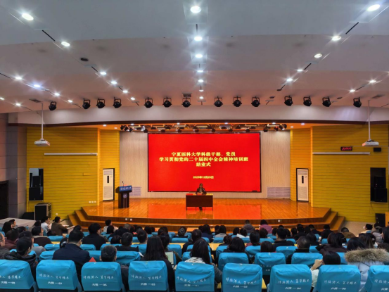 12月25日,学校在雁湖校区启思学术报告厅举办科级干部、党员学习贯彻党的二十届四中全会精神培训班。邀请自治区宣讲团成员,自治区社科院党组副书记、院长马文锋作报告。学校党委副书记邓彦芳主持开班式,党委常委、组织部部长魏晋怡、王新刚,全体科级干部、师生党员代表参加培训。