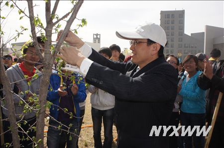 孙涛校长为认捐小树挂上标牌
