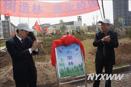 吴世彩书记和孙涛校长共同为“心愿林”揭牌