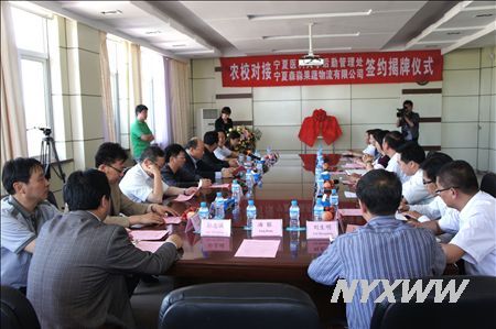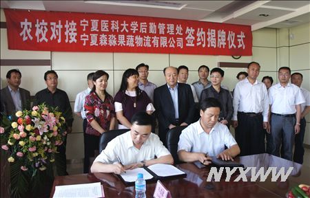 会上,李正直副校长与宁夏林业研究所股份有限公司李健董事长共同为“农校对接”蔬菜供应基地揭牌。后勤管理处马建荣处长与宁夏森淼果蔬物流有限公司尹潭总经理共同签署了《“农校对接”合作协议书》。