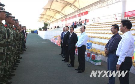 9月12日是中国的传统节日中秋节,学校党委书记吴世彩,校长孙涛,纪委书记张发智,副校长张建中、李正直在相关部门负责人的陪同下,慰问了军训的全体教官和新生学员。