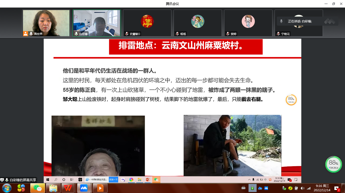 2022年12月14日9:00,护理(高职)学院教工第一党支部全体党员连线腾讯视频线上会议开展了主题党日学习活动,会议由支部书记朴海善主持,支部全体党员和入党积极分子参加。