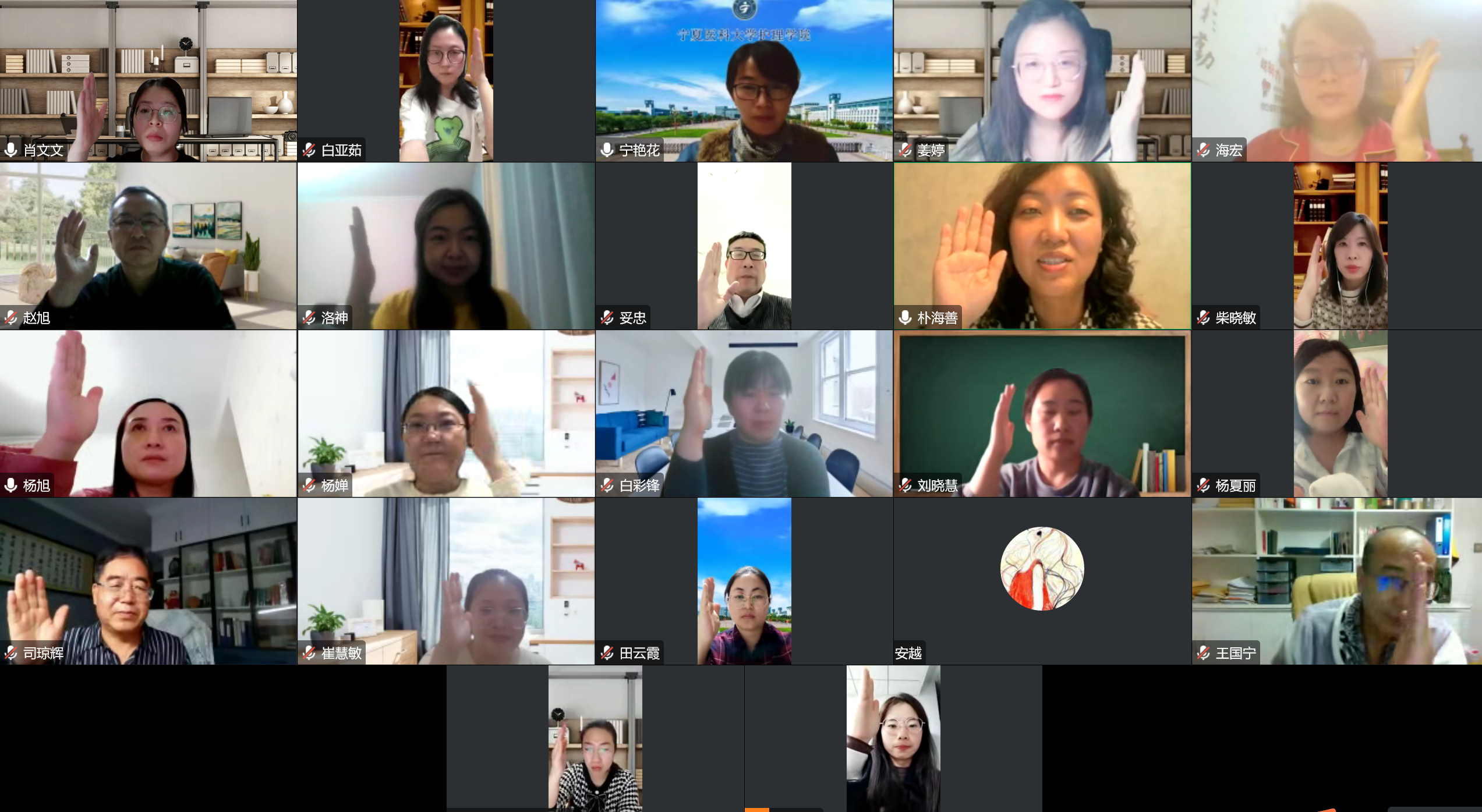 按照预备党员转正大会程序,首先由预备党员宁艳花同志宣读《转正申请书》;其次由两名入党介绍人司琼辉同志和朴海善同志分别介绍宁艳花同志在预备党员考察一年期间的思想和工作学习表现情况;朴海善同志代表一支部向大会报告支委会的讨论意见,经支委会研究同意宁艳花同志按期转正;随后全体参会的正式党员分别逐一进行了充分的发言与表态;因线上会议最后大家通过举手表决形式进行了全体表决,支部19名正式党员一致表决同意预备党员宁艳花同志按期转正。宁艳花同志亦做了积极的表态发言。