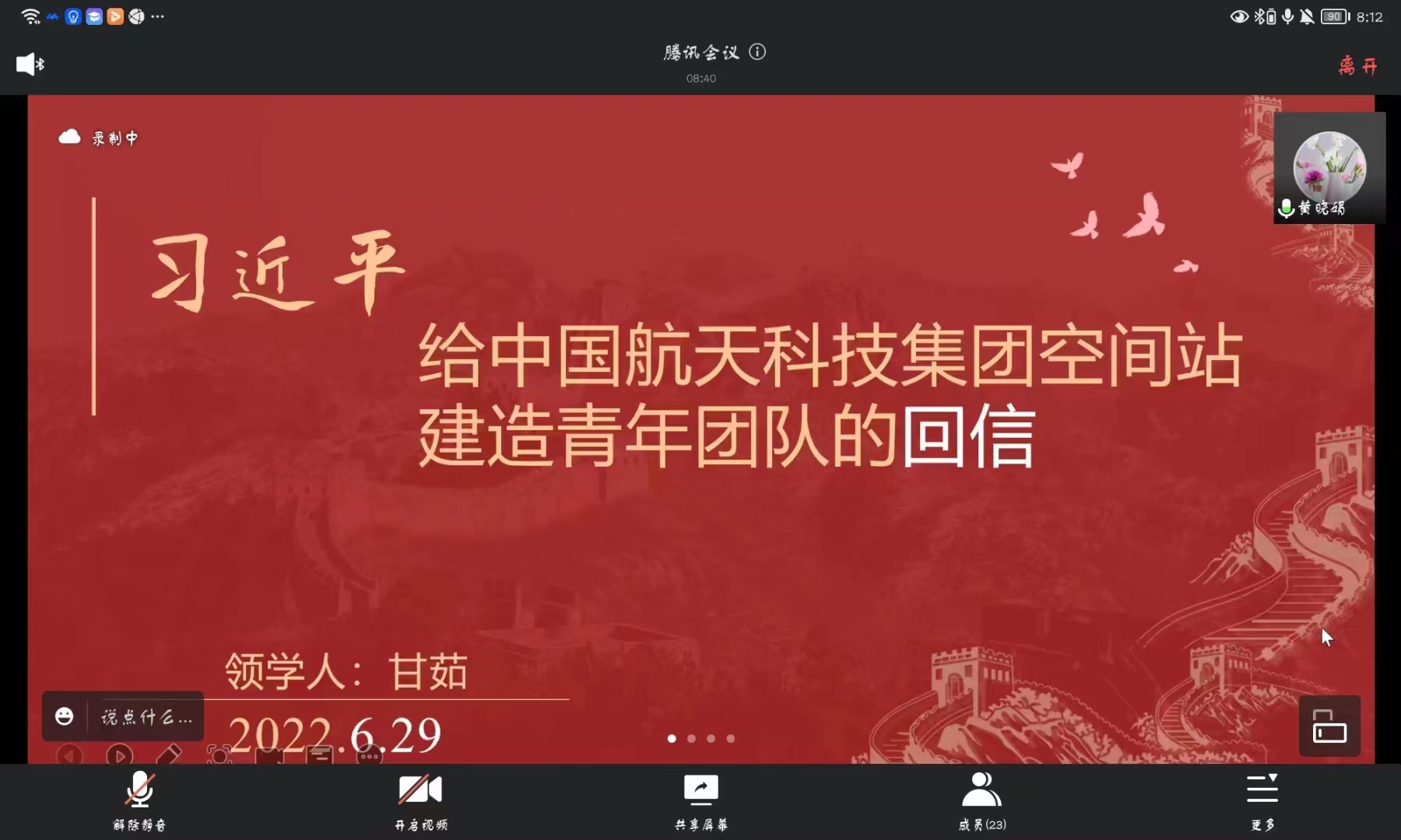 2022年6月29日,护理学院研究生党支部在腾讯会议线上开展庆祝中国共产党成立101周年主题党日活动,支部全体党员和入党积极分子参加此次活动。