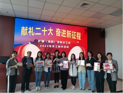 春末夏初之际,5月10日下午,护理(高职)学院分工会联合学院教工第一党支部在雁湖校区知行楼201学术报告厅开展“献礼二十大 奋进新征程”手工制作活动。