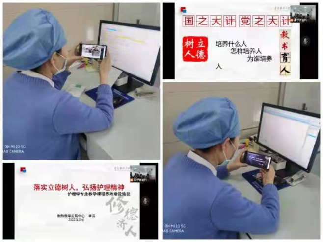 为规范教案书写,深化课程思政教学,实现“课程有思政、教师讲育人”的育人新局面。 学院于3月16日上午特邀教师教学发展中心李燕主任开展了《落实立德树人,弘扬护理精神——护理学专业教学课程思政建设途径》专题讲座。本次讲座采取线上线下相结合的方式,护理学院钱月慧副书记主持会议,护理学院全体教师以及临床学系教师参加了本次讲座。