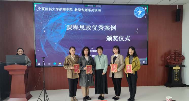 李燕主任从课程思政的内涵、意义及政策做了解读,并结合护理学专业教学课程思政建设途径,阐释护理专业学科“课程思政”建设特色,提出将护理学科思想政治教育元素和所承载的思想政治教育功能,融入课堂教学各环节,实现思想政治教育与知识体系教育的有机统一,实现所有课堂都有育人功能、所有教师都负有育人职责的要求。同时,李燕主任对此次课程思政优秀案例进行点评和指导,就教案书写、教学设计以及课程思政元素的融入等问题予以指导和点评。就如何在教案中融入课程思政等内容以及在教学中融入思政元素的具体举措,列举了许多典型案例,同时鼓励教师要做到有故事的教学,有温度的思政。点评结束后,李燕主任为课程思政优秀案例获得者颁发了荣誉证书。