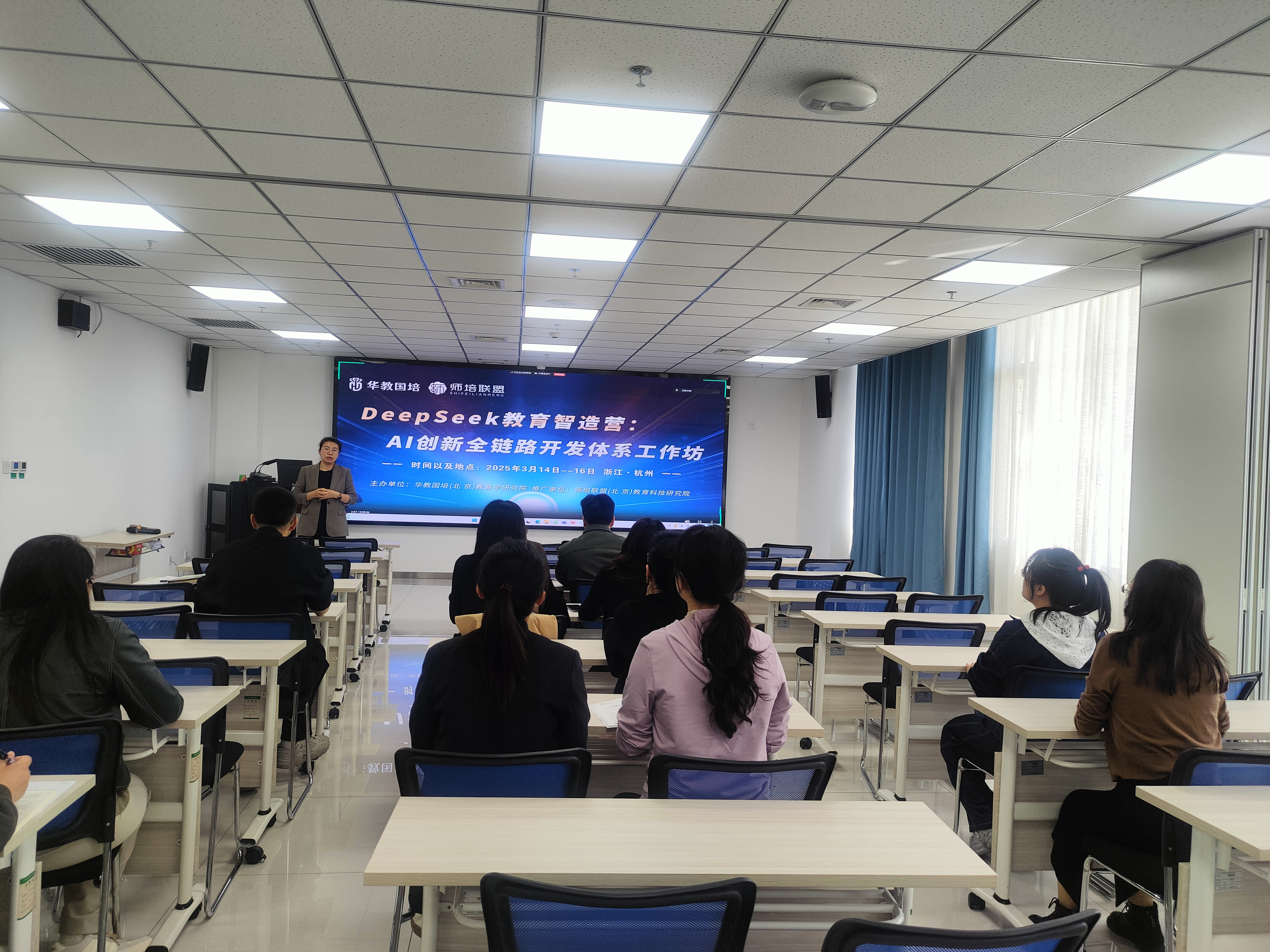 本次培训围绕 DeepSeek 等人工智能技术在教育教学中的创新应用展开,涵盖智能教育生态重构、多模态资源开发、动态视频创课系统、智能课件工程等多个关键模块。通过实际案例演练,如DeepSeek 运用机制等技术,助力教师构建“技术驾驭-资源开发” AI 教育能力体系,学习如何从知识传授者到智能教育架构师的转型升级。同时,培训还分享了诸多 AI 工具使用技巧,如在提示词工程上,展示了不同引导词对 AI 生成内容的影响,让教师们学会精准引导,为制作优质教学课件和视频积累了技术经验。