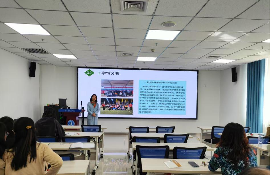 本次交流聚焦卓越班课程建设与教学改革,围绕课程特色、痛点分析及改进方向进行现场汇报。《基础护理学》课程负责人白彩锋介绍,该课程作为护理专业核心基础课程,依托虚拟仿真系统、翻转课堂模式推动“做中学”教学改革,结合课程目标,后续计划引入临床典型案例库,增加虚拟仿真操作占比。《护理学导论》课程负责人穆国霞分享了“三明治”教学法(TST)的应用,以“教师讲授-学生实践-教师点评”模式重构课堂,运用学习通平台提升互动性,实现“以学生为中心”的混合式学习。《护理心理学》课程负责人潘淑均则强调将人文关怀活动融入课程全过程,将目标任务分章分解,循序渐进,引导学生主动学习。