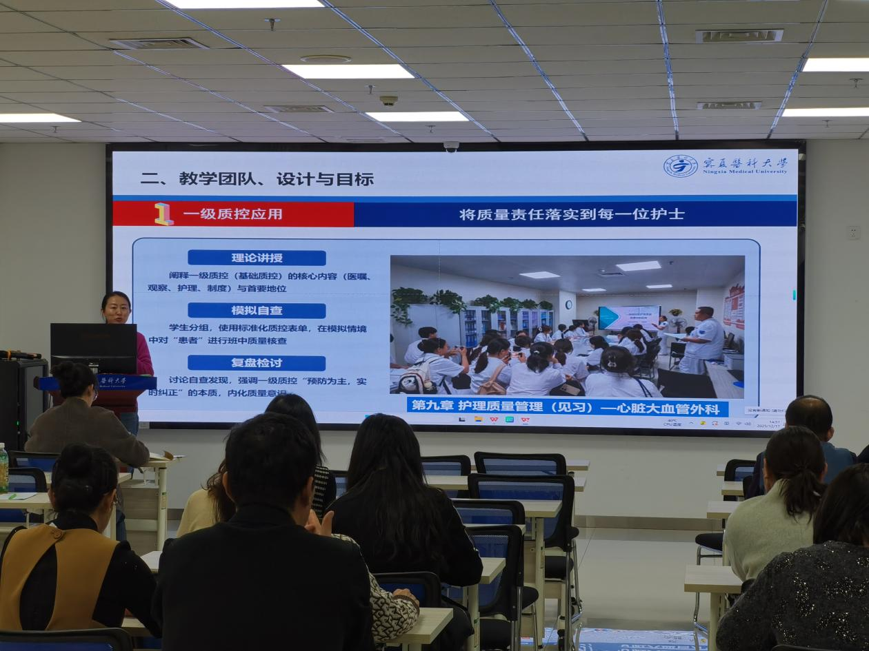 交流环节中,来自澳门十大信誉好的网站总医院的王艳、谢晓华分别围绕《护理礼仪》《护理管理学》课程,结合临床实践经验,分享了课程教学设计思路与实施要点;学院人文护理学系杨婵、临床护理学系唐丽则针对《护理教育学》《健康评估》的教学重点、难点及创新教学方法展开深入讲解。在互动交流阶段,参会教师围绕课程内容优化、理论与实践结合、教学资源共享等内容展开讨论,大家相互借鉴、取长补短。