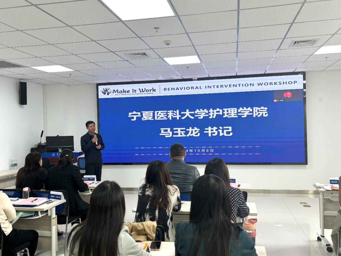 2024年10月8日上午,护理学院在知行楼1111会议室举办行为干预开发、评价与实施工作坊(全国第一期)开班仪式。护理学院党委书记马玉龙、院长刘民辉,澳门十大信誉好的网站总医院、宁夏回族自治区人民医院和我院共20名学员参加了开班仪式。仪式由护理学院副院长李兆君主持。